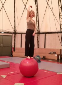 L’accueil chaleureux de l’animatrice nous motive pour nous surpasser à chaque séance. Elle nous propose divers exercices  où nous sommes en instabilité sur différents objets : un tonneau, une brique, un  ballon.