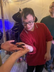 Certains usagers se sont montrés à l’aise et curieux, n’hésitant pas à les toucher, tandis que d’autres étaient plus impressionnées et préféraient observer à distance. Ces différences ont donné lieu à de nombreux échanges…et surtout à beaucoup de rires.